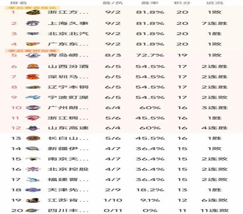 CBA最新排名榜:上海傲视群雄,广厦广东紧随其后,辽宁掉出前八